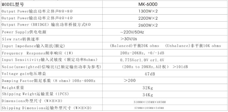MK-6000H专业功放