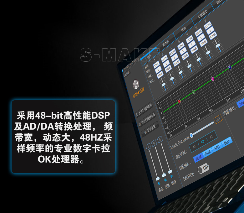 1:本产品采用48-bit高性能DSP及AD/DA转换处理,频带宽,动态大,48HZ采样频率的专业数字卡拉OK处理器。